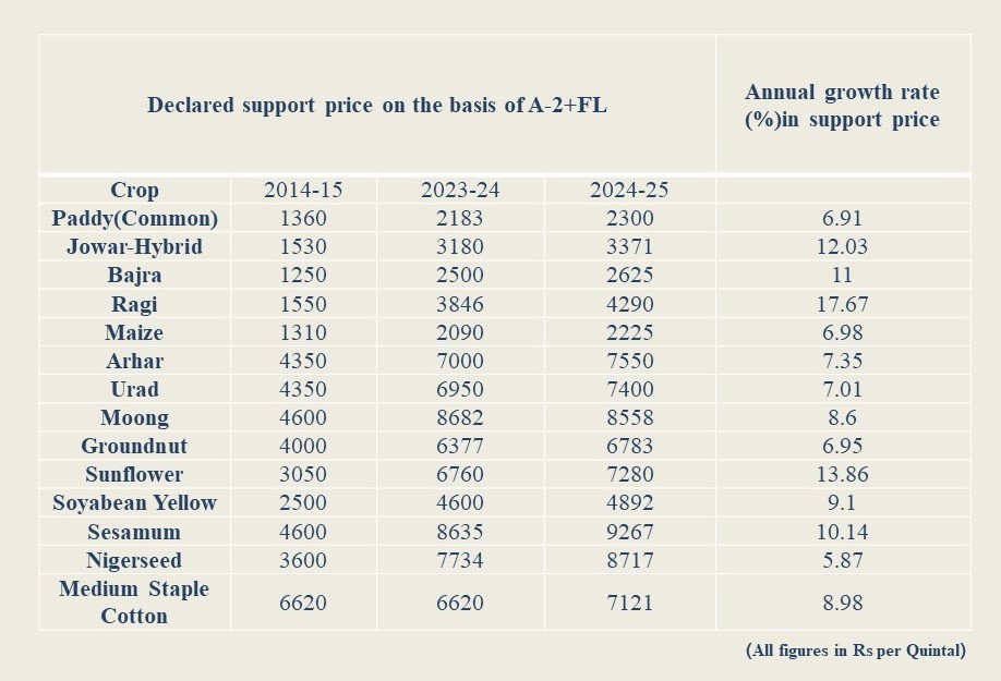 If we look at the support price declared by the Central Government for various crops from the year 2014-15 to this year, then the annual average rate of increase in the support price of these crops in the last ten years has been from 5.87% to 17.67%. In the case of paddy, this growth rate has been 6.91% annually, while in the case of coarse grains it has been 11.92% on an average, in the case of pulses it has been 7.85% and in the case of oilseeds it has been 9.20% annually. But this rate of increase in the support price has been insufficient to compensate for the increasing cost of crop production and give farmers a respectable life and the strength to face the market inflation. As a result, in the last decade after the coming of the Modi government, not only has the average indebtedness of farmers increased, but farmer suicides have also increased. Today half of the farmer families in our country are indebted and have an average debt of Rs 74,121. 44% of this debt is non-banking and actually moneylender debt. When their dignity is hurt due to this debt, they have no other option but to commit suicide. In Modi's rule, the rate of farmer suicides has increased by more than one and a half times compared to earlier.